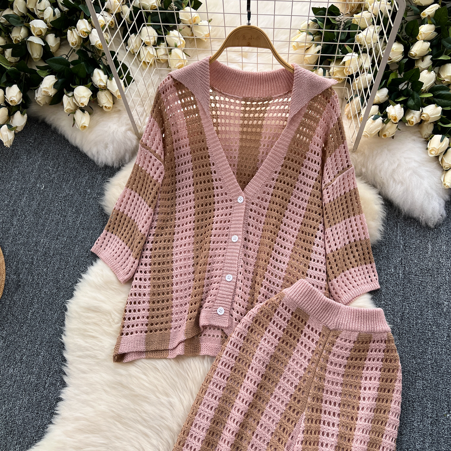 Women's Cold Style Fancy Color Stitching Knitted Cardigan